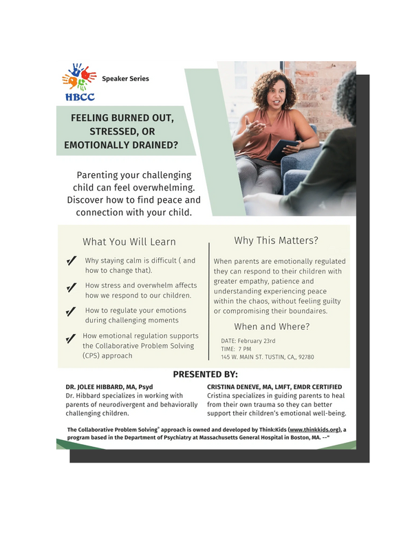 Helping the Behaviorally Challenging Child (HBCC) is a California Nonprofit Public Benefit Corporation whose mission is to enable children experiencing behavioral health challenges to lead more productive and inclusive lives. We work to transform these children's lives by deepening adults’ understanding of their behaviors, and promoting effective interventions that focus on connectedness, collaboration, and inclusion.